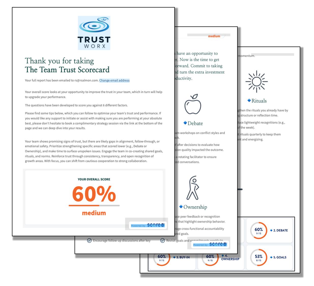This scorecard has been developed to quickly and painlessly produce a Team Trust Score based on your answers. In under 2 minutes you will generate a result with some actionable tips on how to improve.